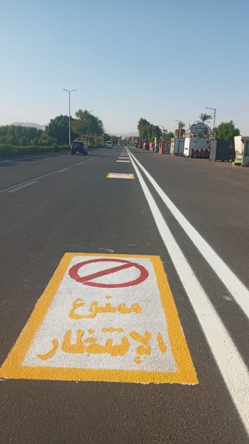 وقامت إدارة مرور الأقصر برسم وتحديد الإشارات والعلامات المرورية اللازمة وتخطيط شوارع المنطقة، وتحديد علامات منع الانتظار بالألوان الفسفورية لمنع التكدسات المرورية والوقوف بنهر الطريق.