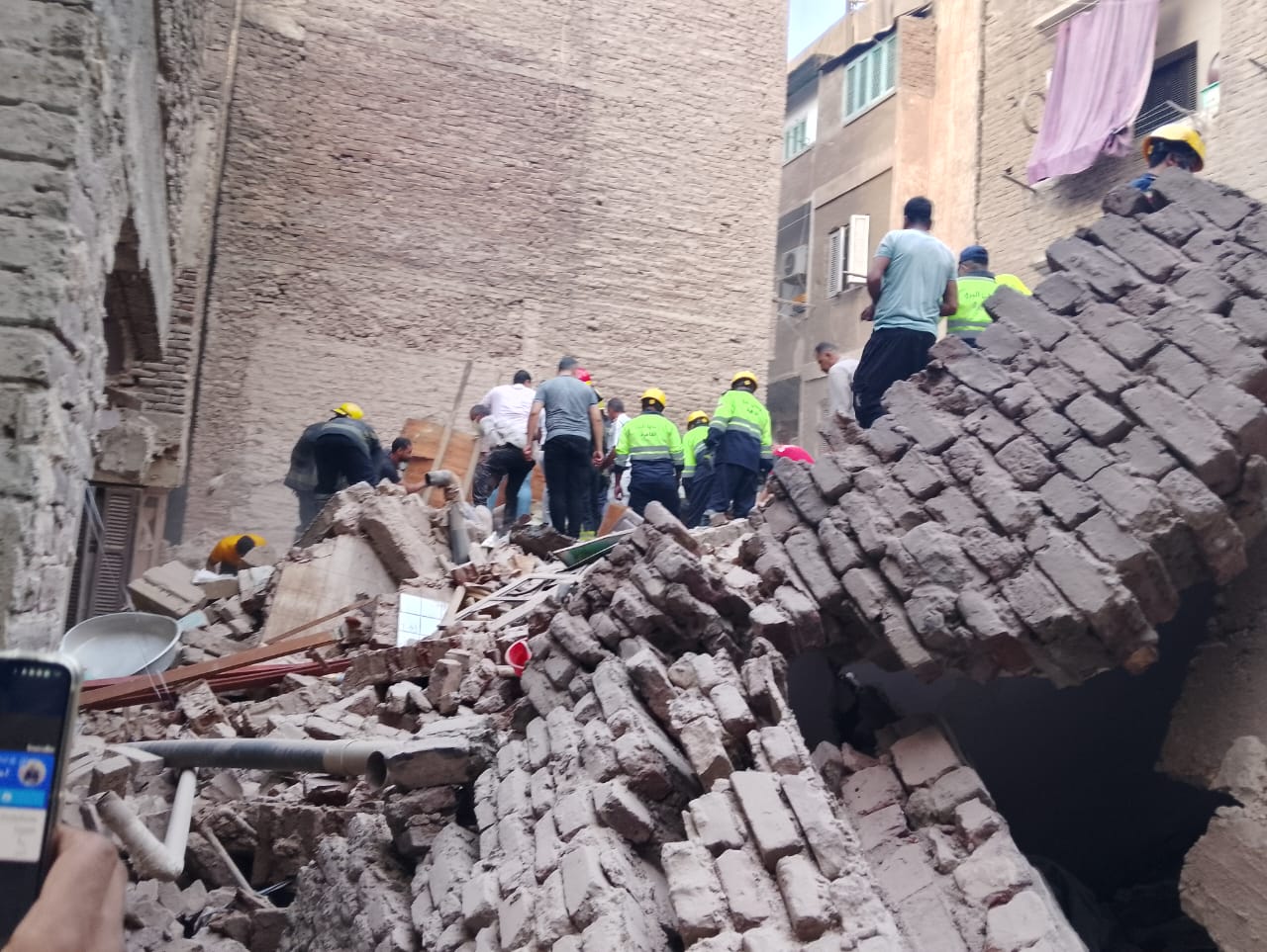 انهار عقار كليا بمنطقة الزيتون في محافظة القاهرة، وسط رعب وذعر أهالي المنطقة.
