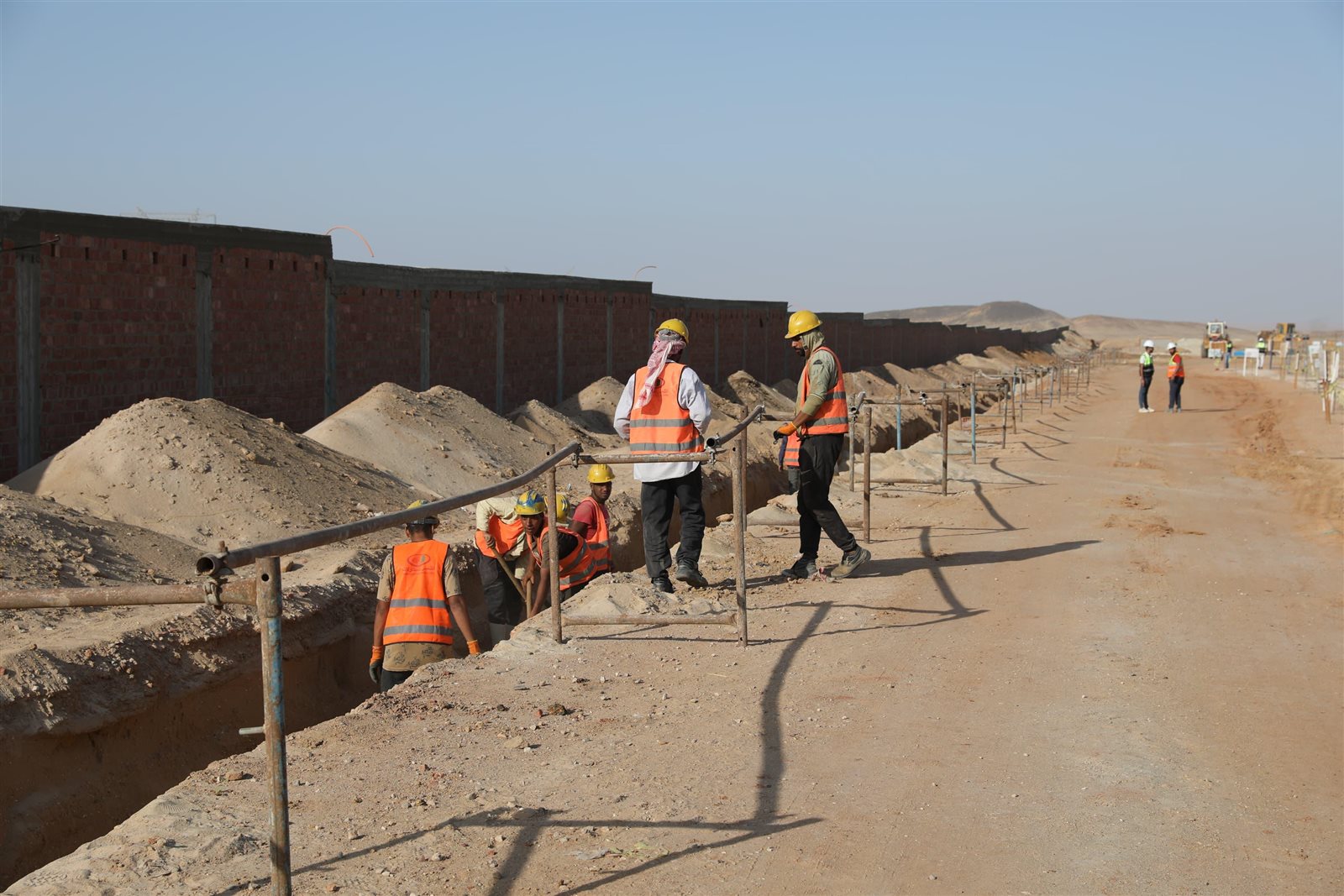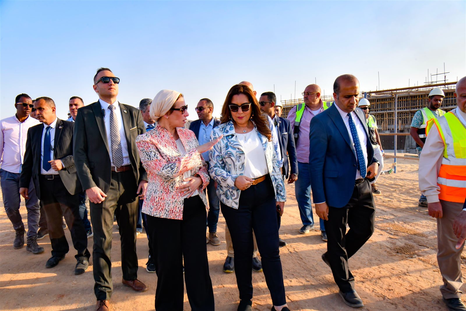 وقد تفقدت د. ياسمين فؤاد ود. منال عوض ما تم تنفيذه من أعمال إنشائية للمشروع على أرض الواقع، حيث يجري الانتهاء من أعمال السور الخارجي للمدينة، والذي يحاط بسياج شجري بطول (9كم)، وطرق داخلية (طول 4 كم وعرض60 متر)، وجاري الانتهاء من إنشاء خزان المياه بطاقة 14 ألف متر مكعب، وإنشاء الطريق الرئيسي والتأسيس للمرافق والبنية التحتية، وذلك وفق الخطط الزمنية لمراحل تنفيذ المشروع.