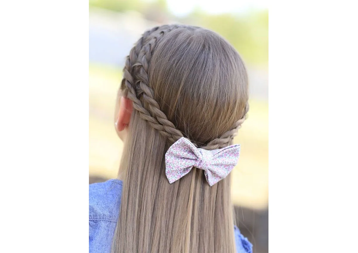 - الأك تاج: قسمي شعر طفلتك إلى قسمين وقومي بتدوير كل قسم حول نفسه لتشكيل تاج صغير وثبتيه بمشابك الشعر.