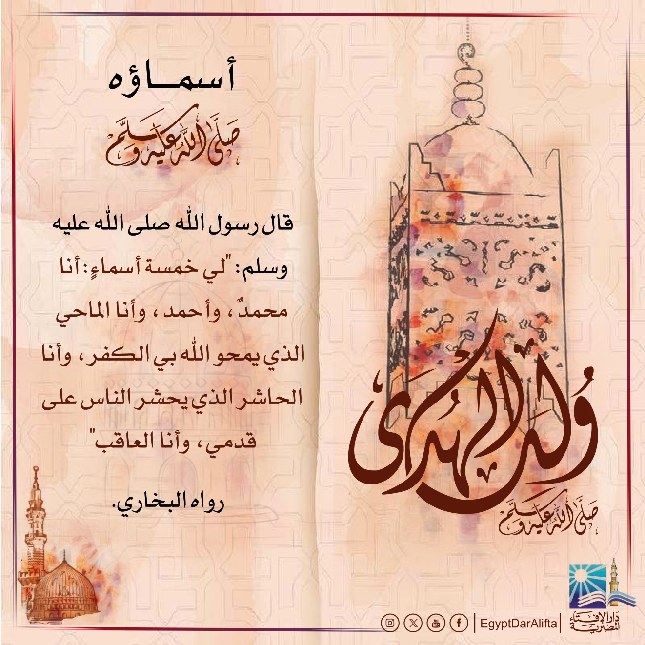 فإذا كان هذا حب النبي صلى الله عليه وسلم بأمته، فماذا عن حب أمته له وتحديدا في ذكره مولده الشريف، ونذكركم بقول القاضي عياض: "اعلم أن من أحب شيئًا آثره وآثر موافقته، وإلا لم يكن صادقًا في حبه وكان مدعيًا، فالصادق في حب النبي صلى الله عليه وسلم من تظهر علامة ذلك عليه، وأولها الاقتداء به واستعمال سنته، واتباع أقواله وأفعاله، وامتثال أوامره واجتناب نواهيه، والتأدب بآدابه في عسره ويسره ومنشطه ومكرهه".