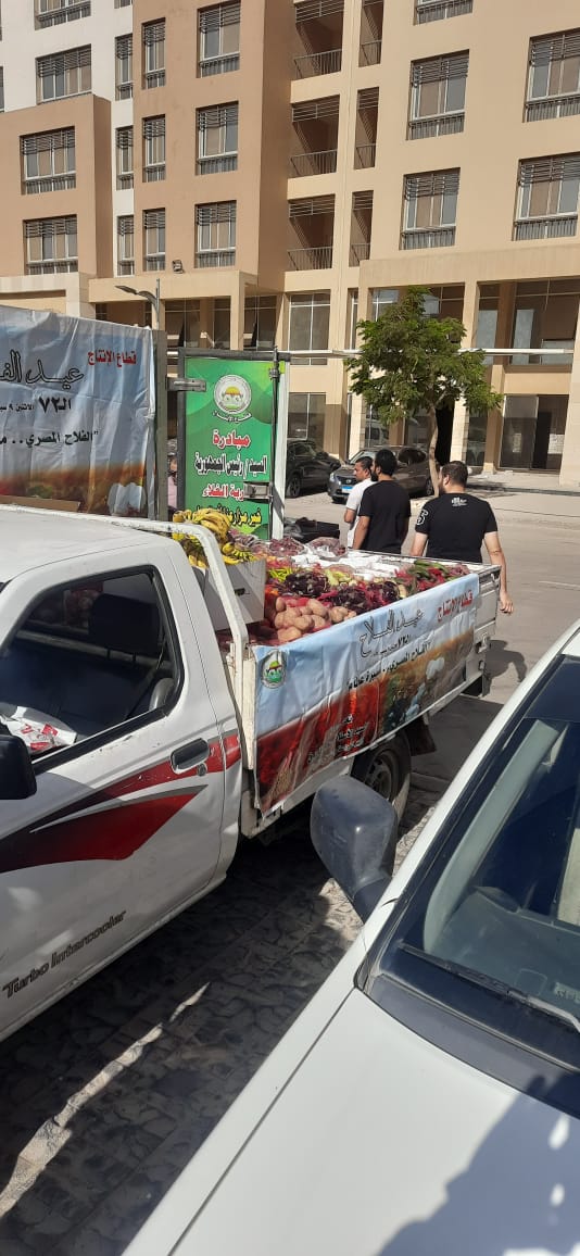 وأشار إلى أنه تم بالتنسيق مع جهاز العاصمة الإدارية الجديدة الدفع بـ 7 سيارات كمنافذ متنقلة، محملة بمنتجات الدواجن، وبيض المائدة، والبقوليات، والخضروات، بأسعار تنافسية، إذا ما قورنت بأسعارها في الأسواق.