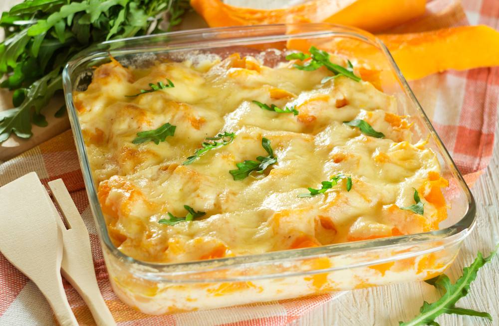 - نفرد قرع العسل في الصينية، يليها إضافة صوص البشاميل على وجه القرع العسلي.