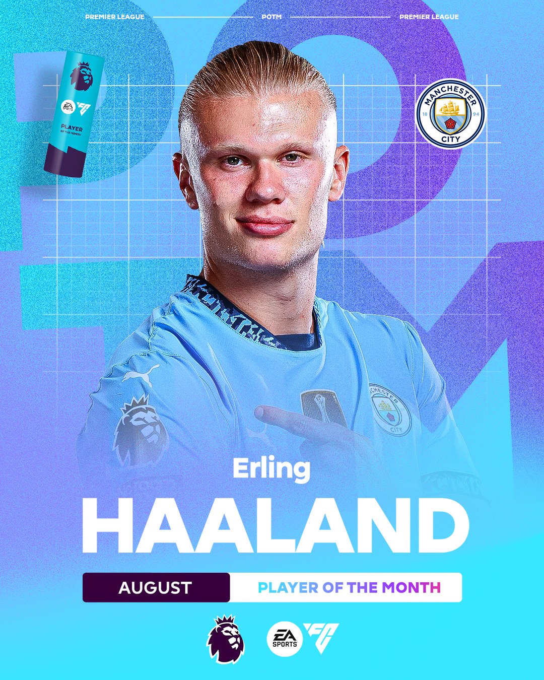 وحصد هالاند جائزة الأفضل لشهر أغسطس في الدوري الإنجليزي، بعدما افتتح الموسم الجديد في البريميرليج رفقة مانشستر سيتي بصورة مميزة، بتسجيله 7 أهداف خلال 3 مباريات.