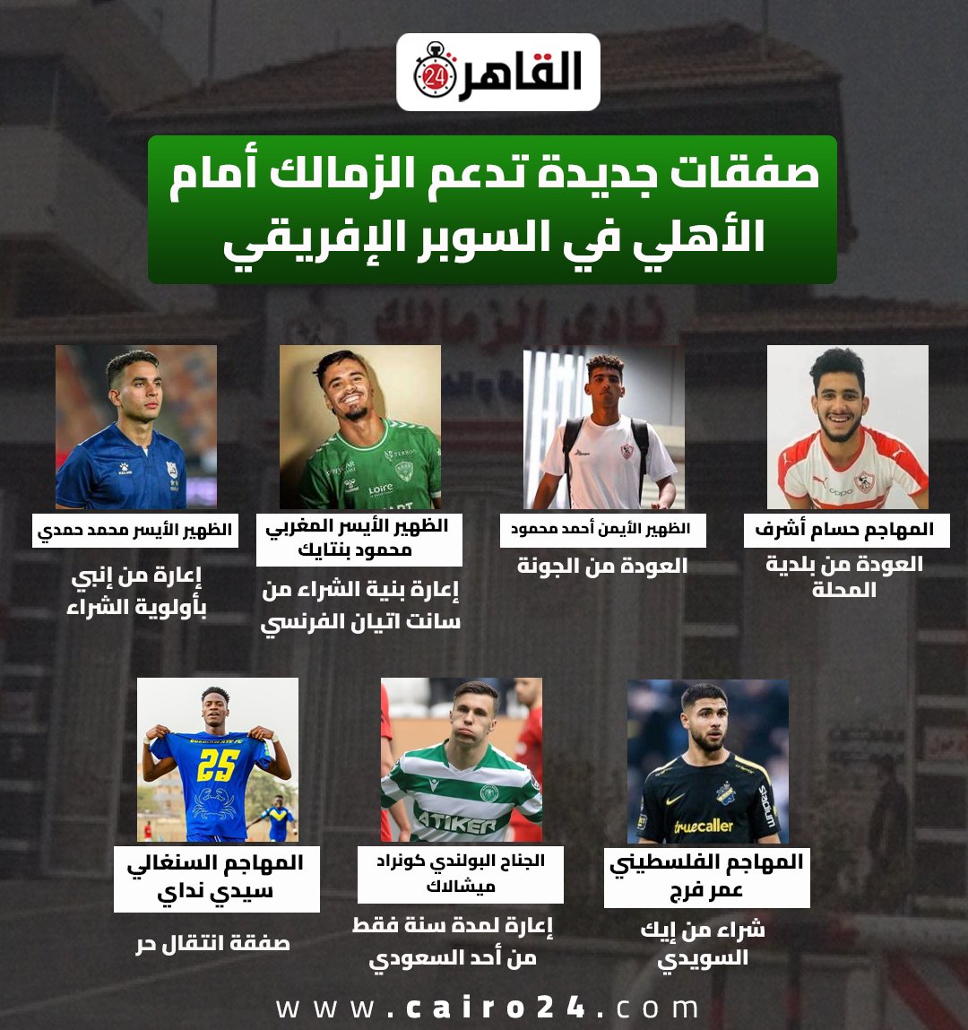 يذكر أن نادي الزمالك خلال الأيام المقبلة سيعلن عن صفقات جديدة للفريق، ولكن ستكون خارج قائمة السوبر الإفريقي، بعد انتهاء تسجيل اللاعبين الجدد بنهاية أمس 12 سبتمبر.