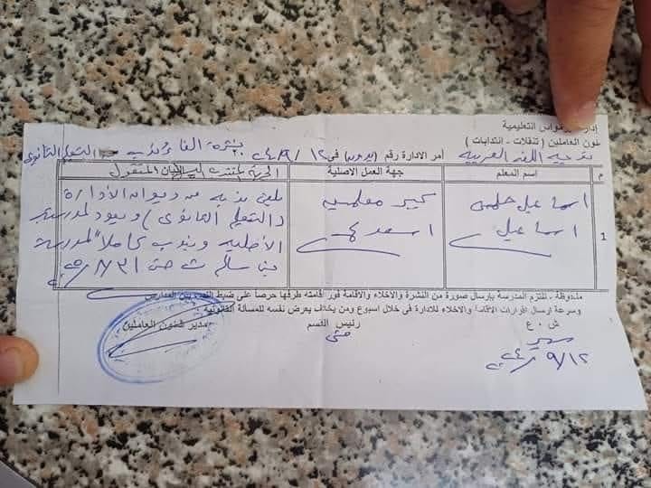 وأشار ابن شقيقة المتوفي، إلى أنه حينما ذهب لمباشرة عمله في اليوم التالي، وجد قرارا بنقله مدرس بالمرحلة الإعدادية، الأمر الذي لم يستوعبه بعد إهانة مدير الإدارة التعليمية له، وفي لحظتها توقف قلبه ورحل مدير التعليم الإعدادي والثانوي بإدارة دير مواس.