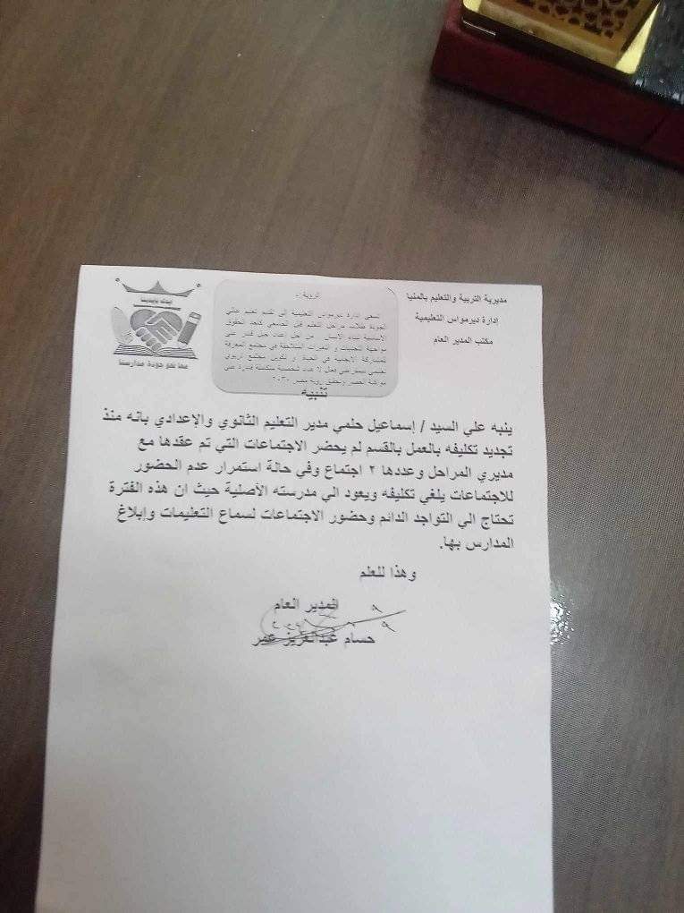 وفاة مدير التعليم الإعدادي والثانوي بدير مواس بأزمة قلبية عقب مشادة مع مسؤول الإدارة في المنيا