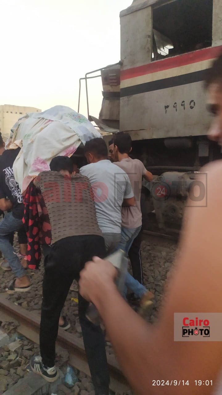 اللقطات الأولى من حادث تصادم قطارين بالشرقية