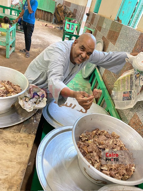 وأضاف: احتفالا بالمولد النبوي، يتجمع كل اهل النجع وبعض المحبين من القرى والنجوع القريبة بساحة المسجد مفترشين الأرض لتناول الملوخية الناشفة مع اللحم.