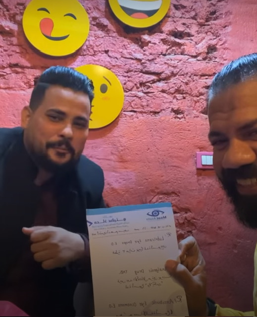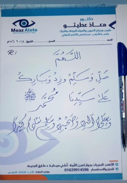 ولم يفت الدكتور معاذ أن ينشر ذلك مع روشتة كتبها بخط يدة: اللهم صلي وسلم وزد وبارك على سيدنا محمد وعلى آلة وصحبة وسلم.