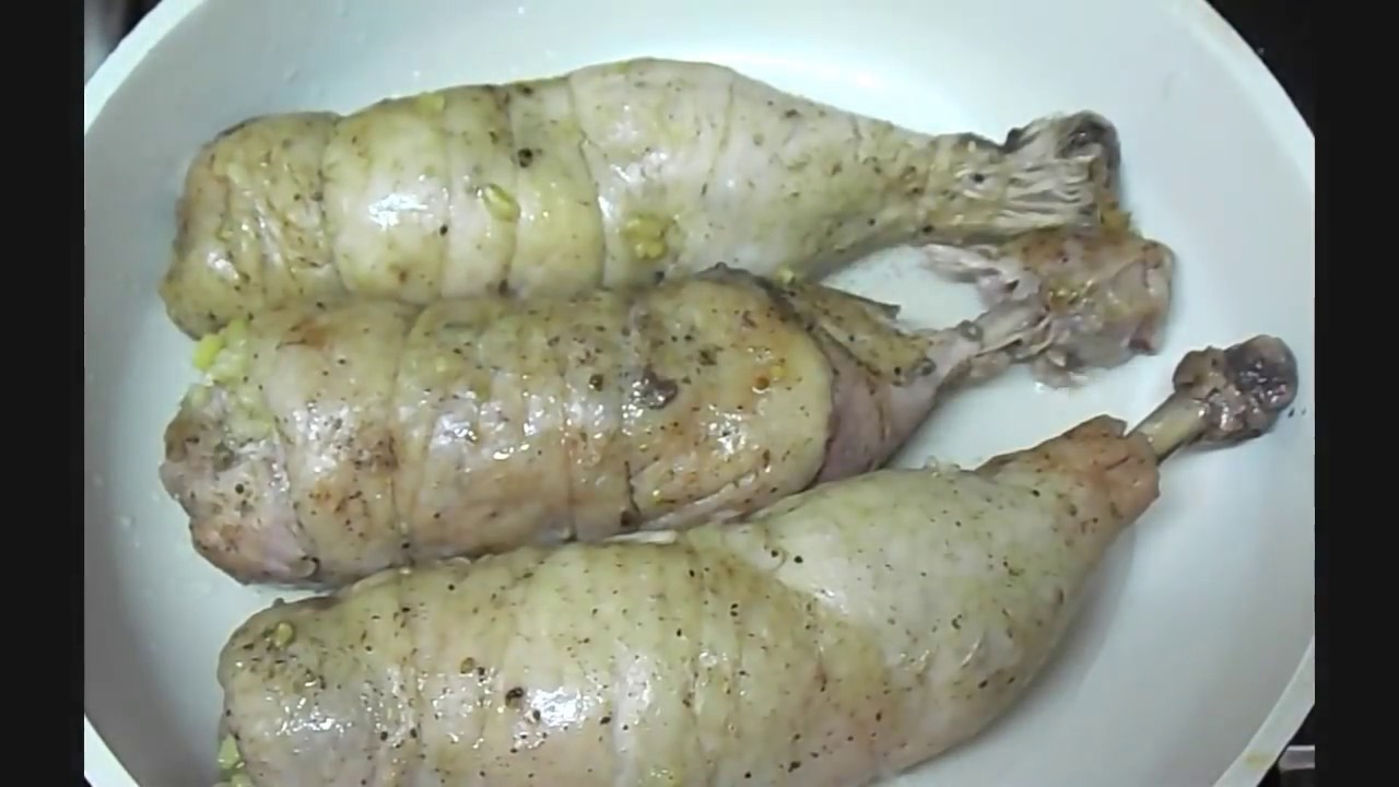 - كرري نفس الخطوة مع باقي أوراك الدجاج ثم اسلقي الحمام الكداب في ماء مغلي.