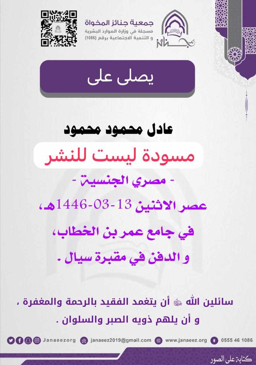وقالت رشا محمود، شقيقة الشيف المصري عادل محمود فكري، أن شقيقها توفي يوم الأحد الماضي، خلال تأدية مهام عمله بأحد مطاعم مدينة المخواة السعودية، وأن شقيقها سافر للعمل في الخارج لتحسين الدخل، وخاصة أنه كان لديه مطعم مشويات خاص به في عين شمس بالقاهرة، ومازال المحل موجود حتى بعد سفره إلى السعودية.