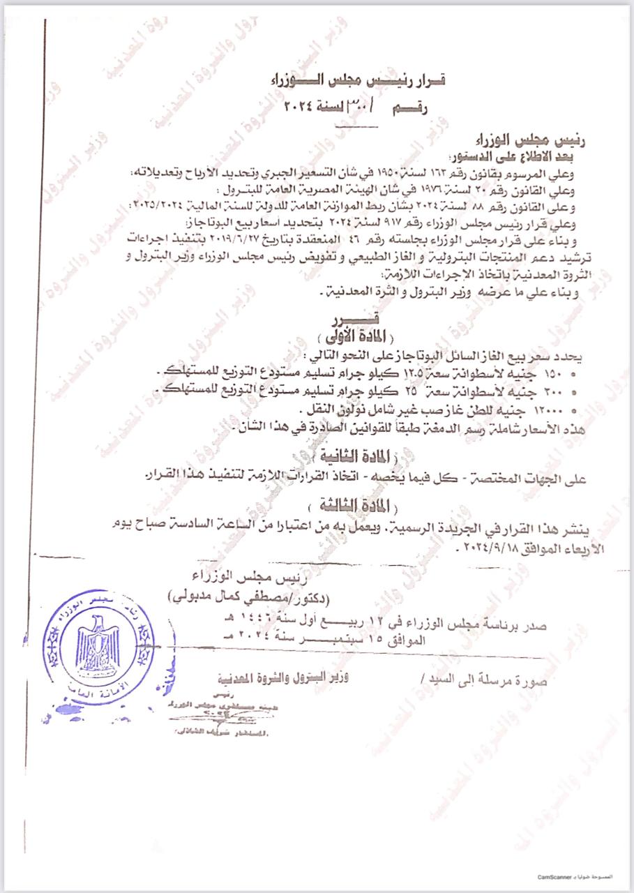 قرار حكومي بزيادة سعر أسطوانات الغاز المنزلي 50 جنيهًا| مستند