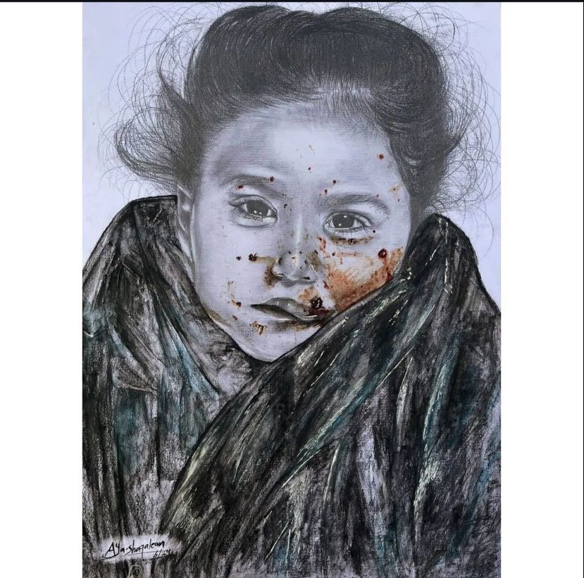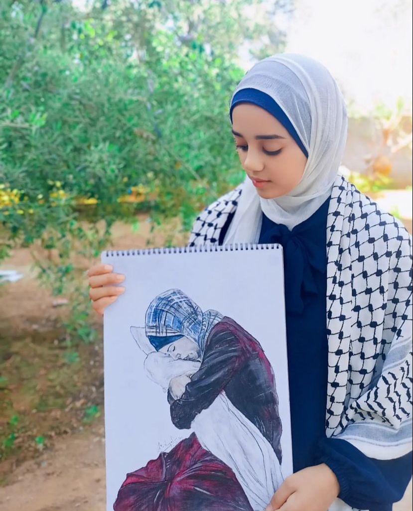 واختتمت أية حديثها: رسالتي للعالم أن احنا كرسامين لنا حقوقنا، ومن أبسط حقوقنا توفير أدوات الرسم، وحقي وحق كل شعبي أن نعيش بأمان وسلام، ولهذا أكثر أعمالي الفنية عن الأطفال، لأنهم أبرياء ولهم الحق بالعيش بأمان، متسائلة: أين جمعية حقوق الطفل عن أطفال غزة.