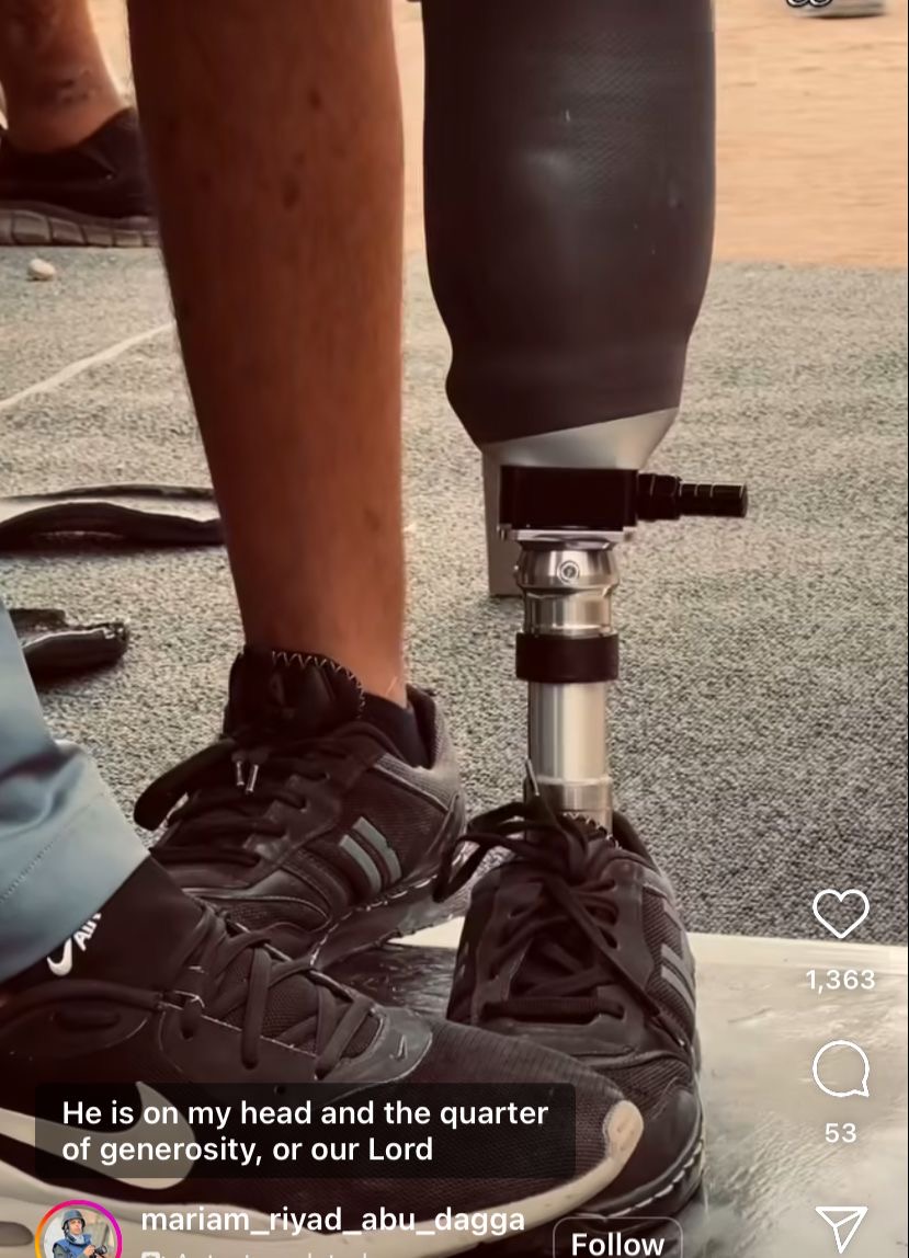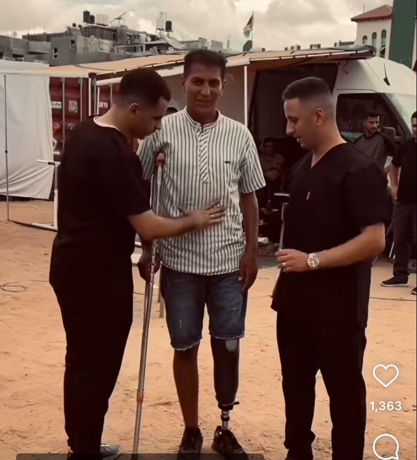 ونشرت إحدى الصحفيات الفلسطينيات، فيديو عبر حسابها الشخصي بموقع انستجرام يظهر فيه طاقم طبي أثناء توزيع مساعدة مصابي غزة من خلال إمدادهم بالأطراف الصناعية وعلقت عليه قائلة: طاقم طبي أردني يباشر داخل مستشفي ميداني أردني، في مدينة خان يونس، اليوم الثلاثاء بتركيب أطراف صناعية لمصابي الحرب المتواصل على قطاع غزة.