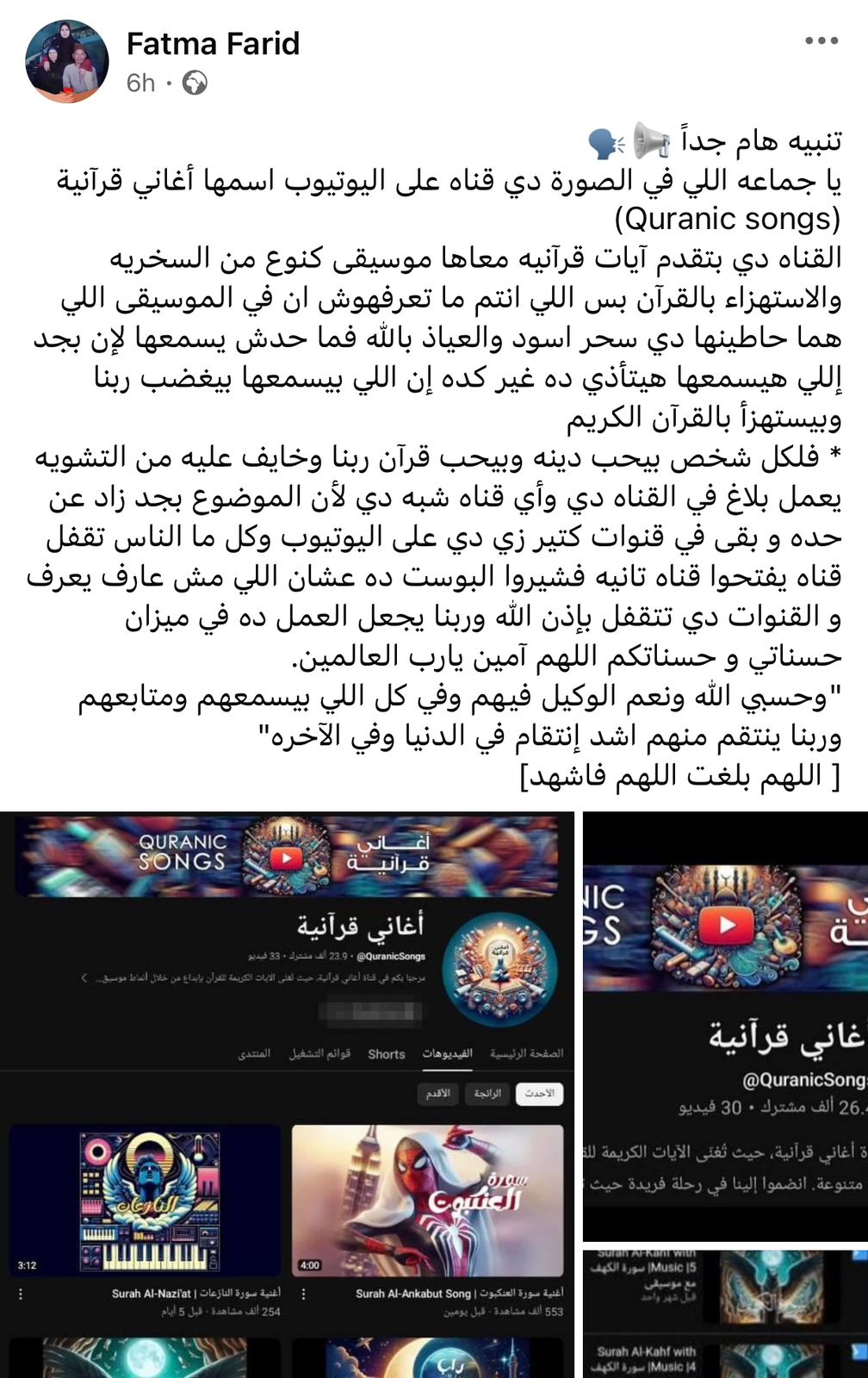 وشارك العديد من رواد منصات التواصل الاجتماعي عبر منصات فيسبوك وتيك توك، الكثير من الدعوات حول غلق قناة الأغاني القرآنية على منصة يوتيوب، الذي حصدت آلاف المتابعين والمشاهدات على محتوى نص السور القرآنية بالأنغام الموسيقية، ولكن جاءت هذه المُشاهدات مُحملة بـ الانتقادات والهجوم عبر التعليقات بـ إغلاق هذه القناة وحذف كل منشوراتها وفيديوهاتها.