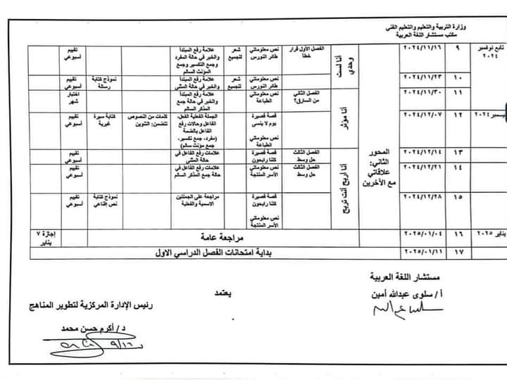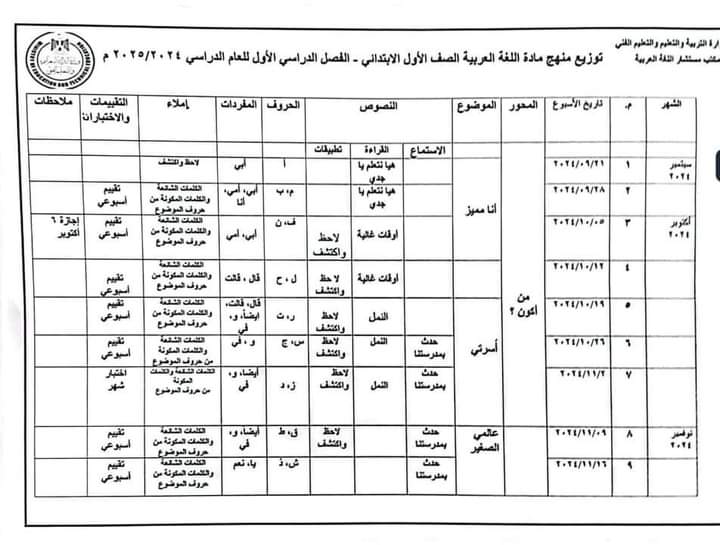 أما بالنسبة إلى توزيع مناهج اللغة العربية الصف الثالث الابتدائي 2025 الترم الأول، فمن المقرر أن يكون جدول الدروس المقررة في شهور الفصل الدراسي الأول بالمرحلة الابتدائية، وتحديدا بالفصل الثالث الابتدائي، والتي جاء كالتالي: