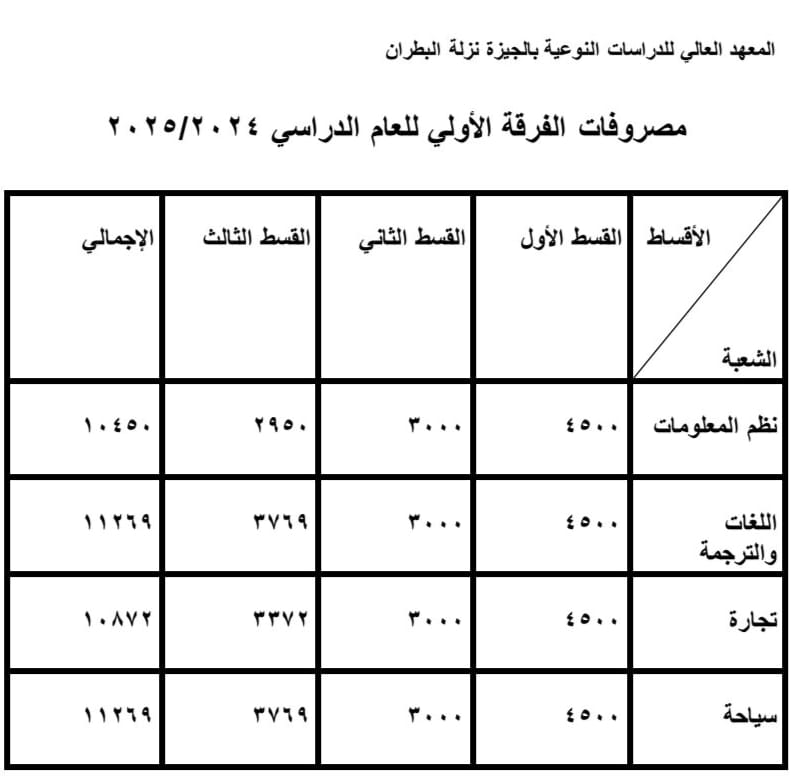 مصاريف المعهد العالي للدراسات النوعية بالجيزة 2024