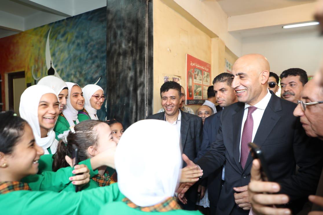 وخلال جولته، التقطت الكاميرات لحظات استقبال عبد اللطيف للطلاب ومشاركتهم لحظات فرحتهم بالعام الدراسي الجديد، خاصة صغار السن منهم، مداعبهم ومصافحتهم وشاركهم الأنشطة والحصص الدراسية الأولى لهم بالعام الدراسي 2025، والاطمئنان على سير العملية التعليمية لهم بشكل منضبط.