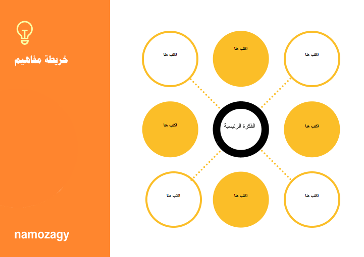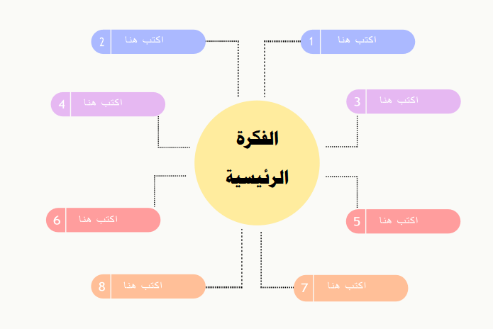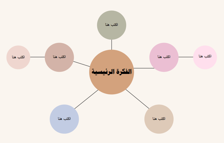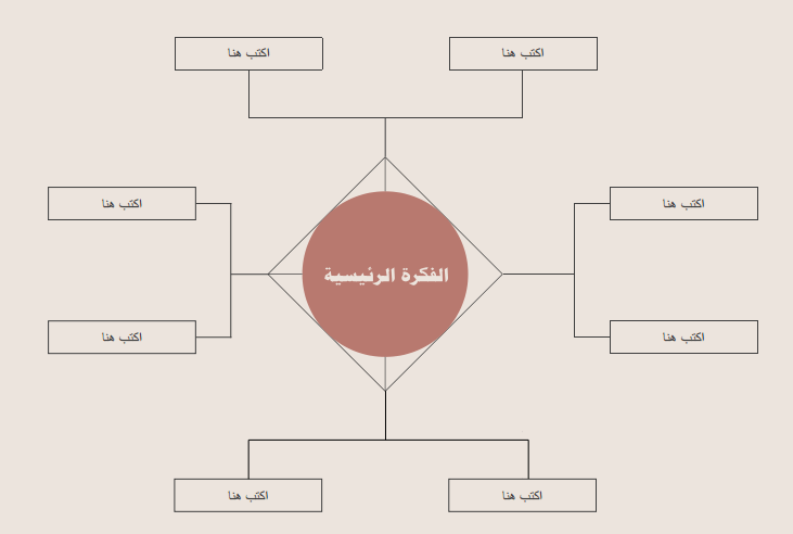 وللباحثين عن نموذج لـ خرائط ذهنية جاهزة PDF من أجل تحميلها أو طباعتها والكتابة عليها، نعرض النموذج التالي الجاهز للتحميل: