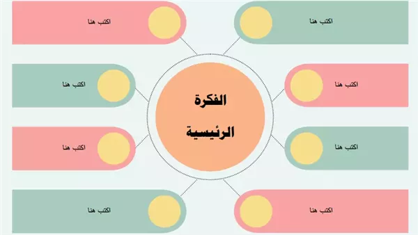 يفضل استخدام الألوان والأشكال الهندسية عند كتابة الخريطة الذهنية، وللمبتدئين نعرض نماذج من خريطة ذهنية فارغة Word جاهزة لإضافة أفكارك وتحليلها:
