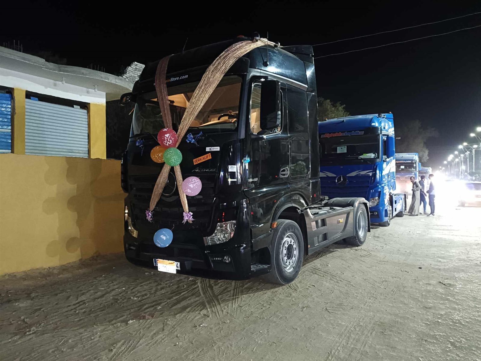 كما شهد مركز سمسطا، زفاف عروسين داخل سيارة تريلا، وشارك في موكب الزفاف عدد من سيارات النقل الثقيل.