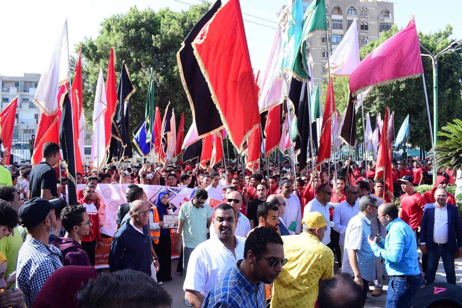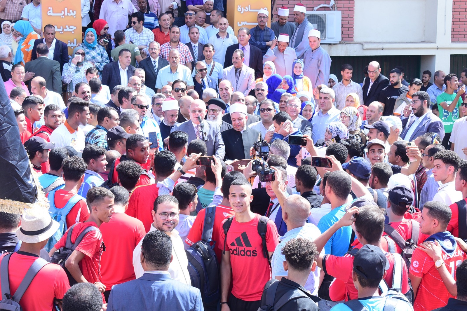 وقاد المسيرة الدكتور حسان النعماني رئيس الجامعة، ورافقه نواب رئيس الجامعة، والأمين العام، وعمداء الكليات ووكلاؤهم، وأعضاء هيئة التدريس والعاملون بمختلف قطاعات الجامعة، وعدد غفير من الطلاب وذوي الإعاقات المختلفة، إلى جانب الحضور المشرف من ممثلي الأزهر الشريف ووزارة الاوقاف، وعنهم الدكتور عمر تمام وكيل المنطقة الازهرية، والدكتور محمد حسني وكيل وزارة الأوقاف، والقص كيرلس فهيم نائبا عن الأنبا باخوم أسقف سوهاج، ونواب مجلسي النواب والشيوخ، ومسئولي وزارات الأوقاف والشباب والرياضة، ونخبة من قيادات المجتمع المدني والجهات الحكومية.