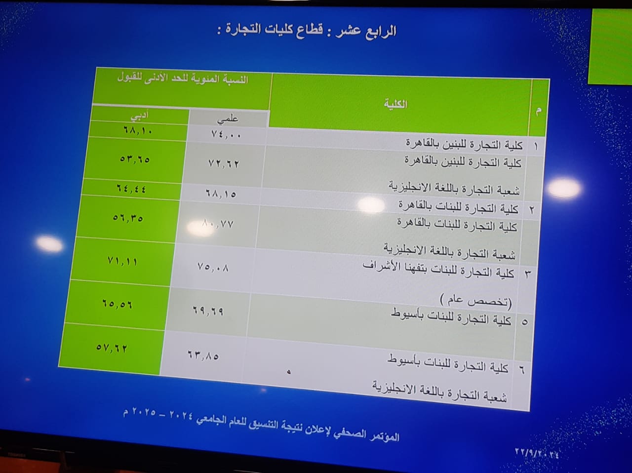 - كلية الإعلام للبنين بالقاهرة: القسم العلمي 69.69% والقسم الأدبي 69.84%