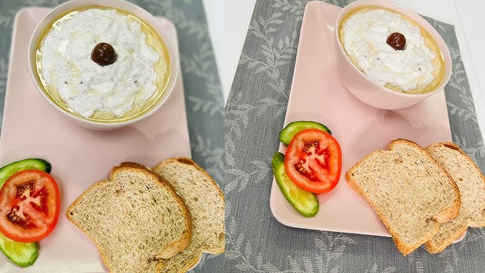- ستحصلين على جبنة كريمي طبيعية ومغذية ضعيها في العلبة ووقت التقديم زيني بزيت الزيتون وحبة البركة.