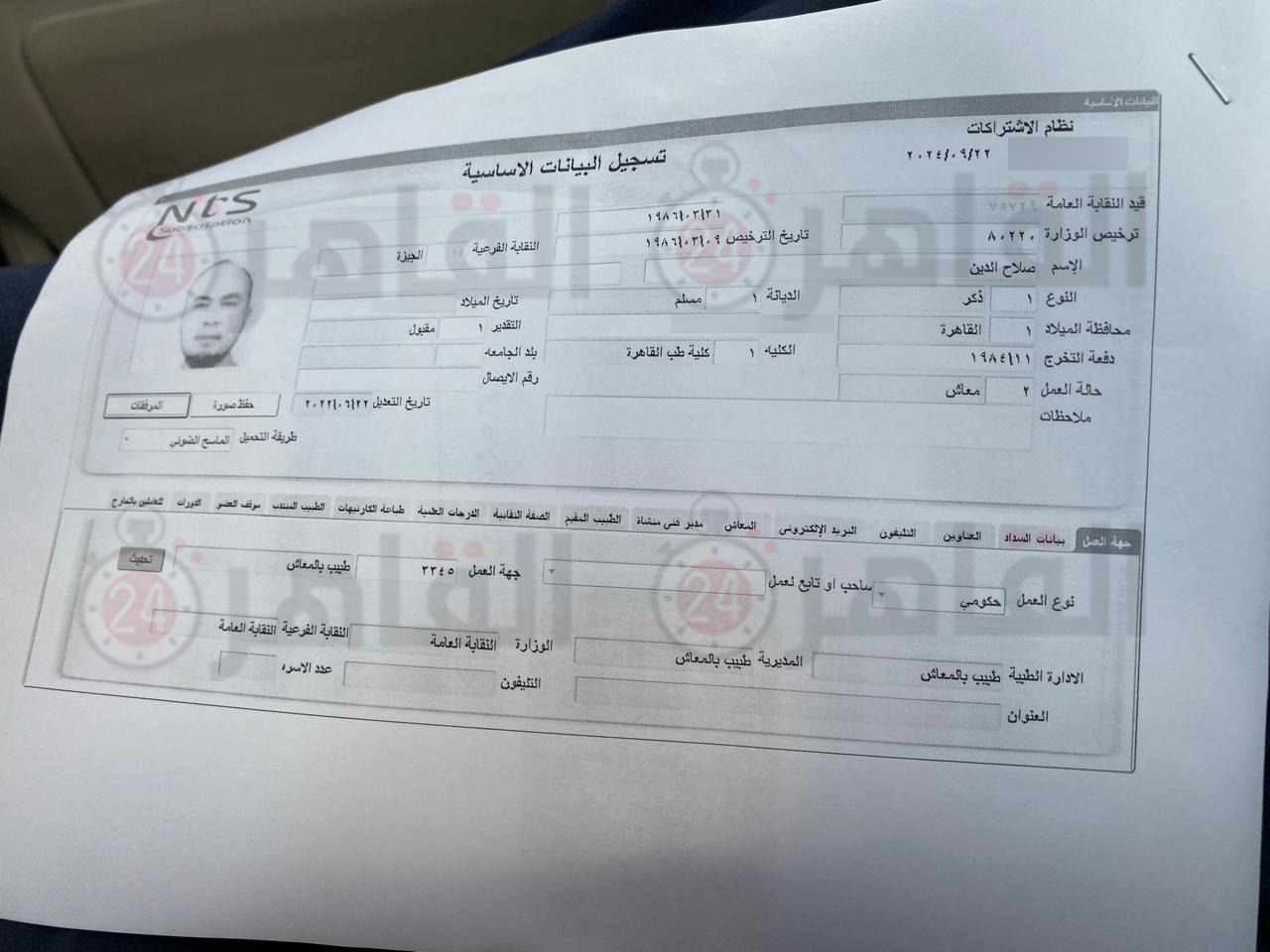 ننشر سجل قيد صلاح الدين التيجاني والدرجات العلمية المسجلة بنقابة الأطباء| خاص