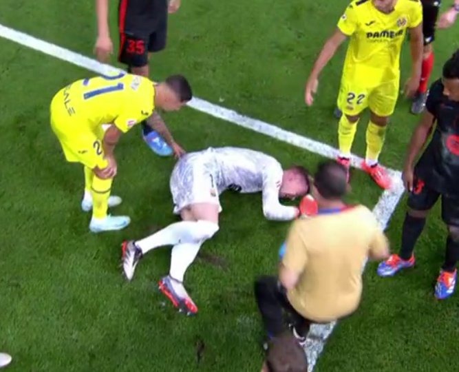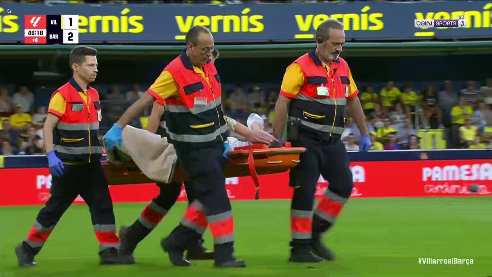 وسقط تير شتيجن على أرضية ملعب لا سيراميكا عقب تعرضه لإصابة في ركبته اليمنى، وخرج على إثرها من الملعب على نقالة وهو يبكي.