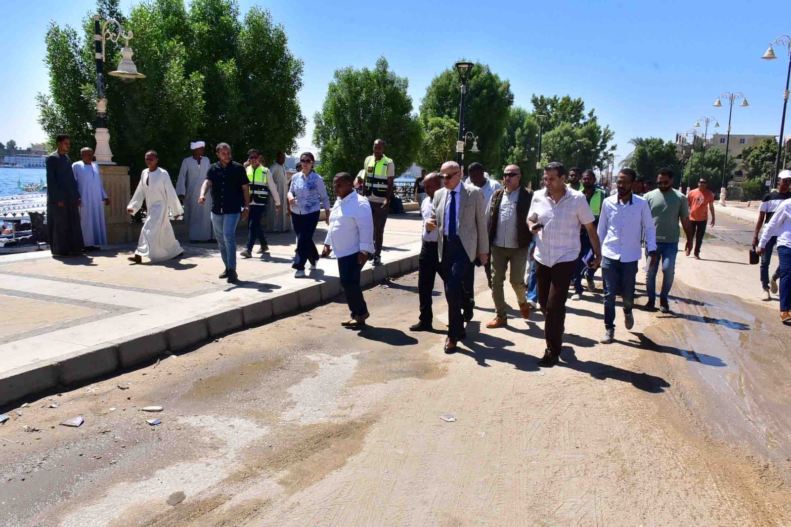 ووجه محافظ الأقصر، بضرورة الانتهاء من رسم أسوار الكورنيش الجديد بالجداريات والرسوم الفرعونية مع زيادة أحواض الزهور إلى جانب دهان أحجار الدبش وسور الملعب الخماسي واستكمال تركيب بلاط الأنترلوك.