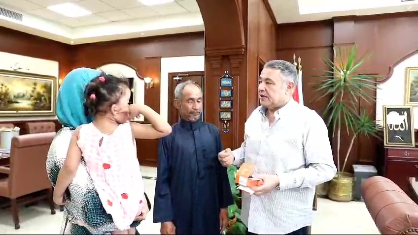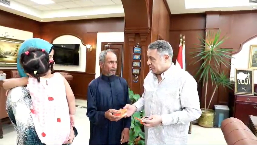 وأهدى المحافظ الطفلة سماعة طبية، استجابة لطلب والدها بمساعدته في شراء سماعة طبية للصغيرة التي تبلغ من العمر ثلاث سنوات، وبعد دراسة الحالة تبين أنها من الأسر الأولى بالرعاية.