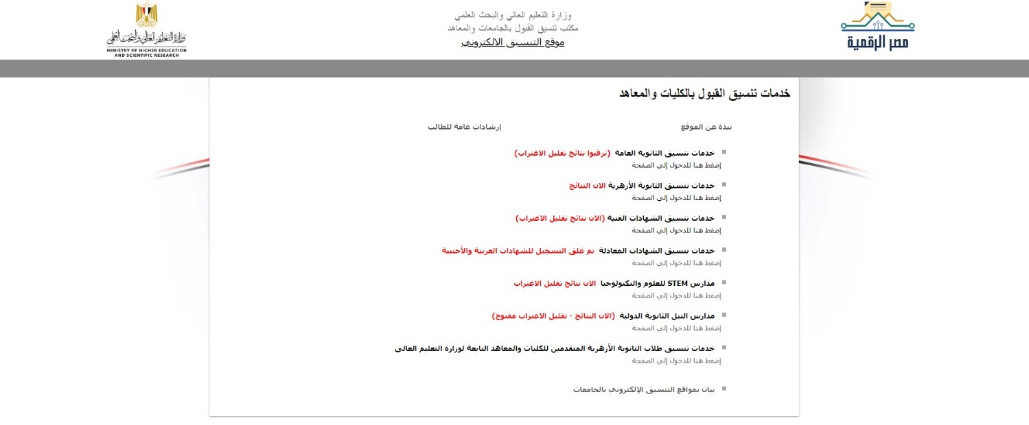 ويمكن لكل من يرغب في الاستعلام عن نتيجة تقليل الاغتراب لـ طلاب الدبلومات الفنية 2024، فيجب عليه الدخول على رابط موقع التنسيق الإلكتروني من هنا.