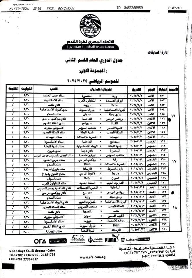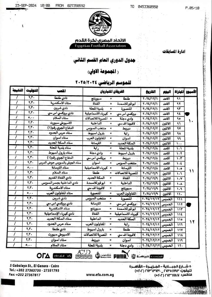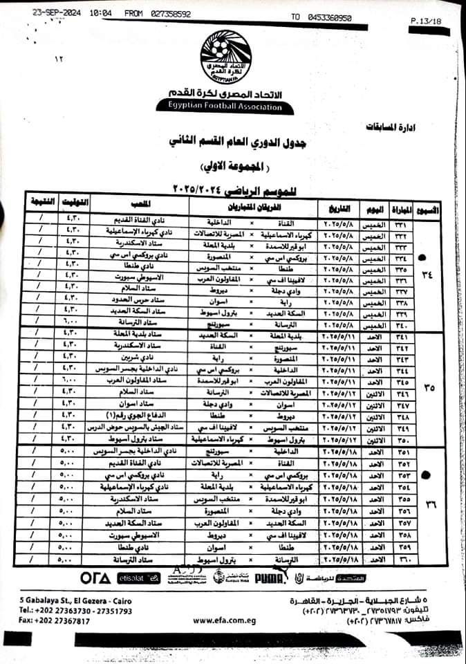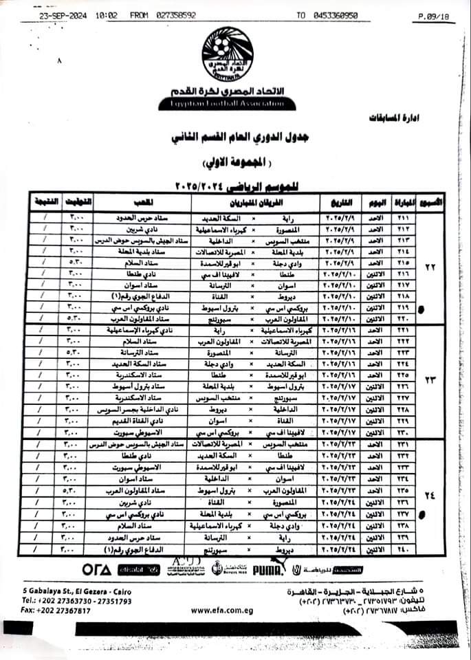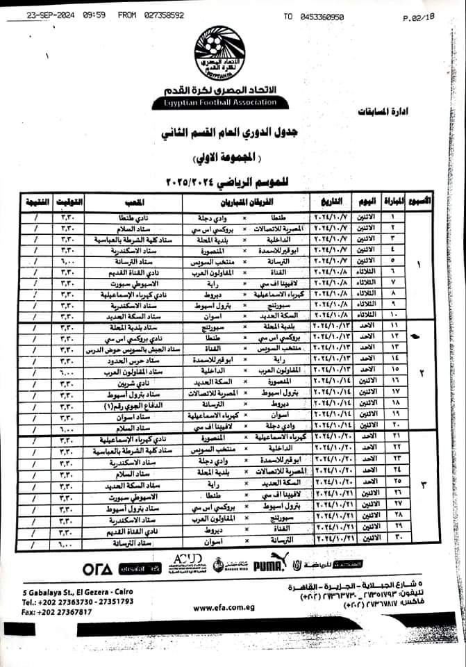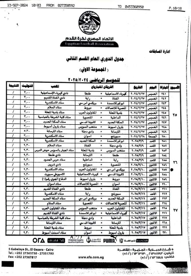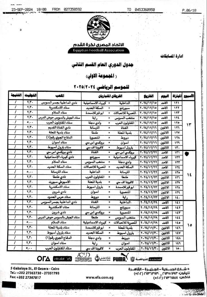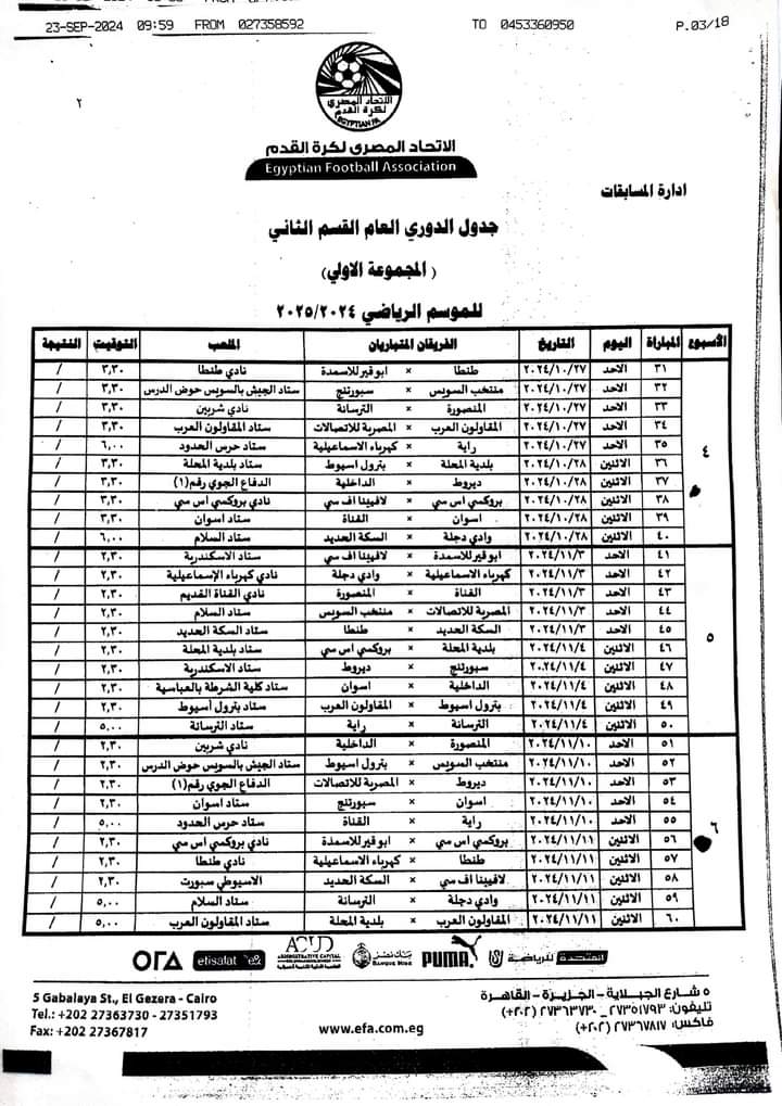 جدول منافسات دوري القسم الثاني للموسم الرياضي 2024-2025
