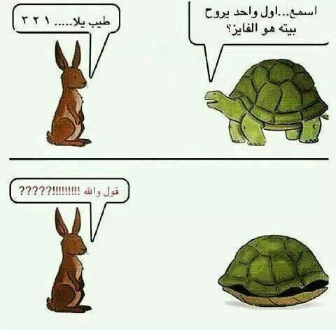 وفي مرة قررت السلحفاة أنها تتحدى الأرنب وتدخل معاه في سباق، وقبل ما تقول السلحفاة للأرنب يلا نبدأ، راحت حاطة في منتصف طريق السباق شوية جزر وتحت الجزر دا حفرة، وبعد ما عملت كدا قالت للأرنب يلا نبدأ السباق.
