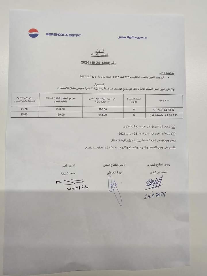 وجاءت أسعار بيبسي كولا مصر على النحو التالي: