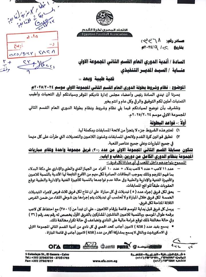 تعرف على نظام ولوائح دوري القسم الثاني للموسم الجديد موسم 2024-2025
