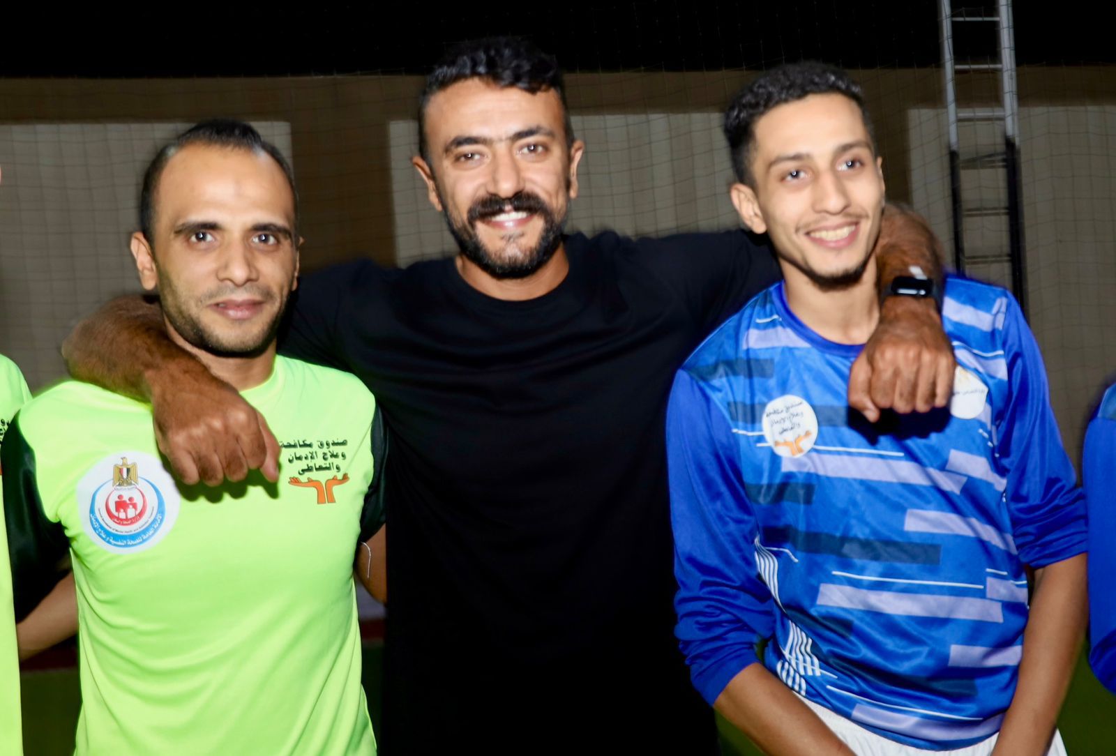 كما حرص الفنان أحمد العوضي على زيارة أحد المراكز العلاجية التابعة للصندوق ومشاركة المتعافين الأنشطة الرياضية، وذلك في إطار الحرص والتأكيد على إزالة الوصمة عن مرضى الإدمان ومساندتهم بعد التعافي على الاندماج مرة أخرى بالمجتمع، وكذلك التأكيد على أن الإدمان مرض يمكن العلاج منه من خلال المراكز العلاجية المتخصصة والشريكة مع الخط الساخن 16023 للصندوق، بالإضافة إلى بث روح التحدي والإرادة في تنافس رياضي بين شباب المتعافين، وذلك في إطار الحرص على تقديم خدمات ما بعد العلاج.