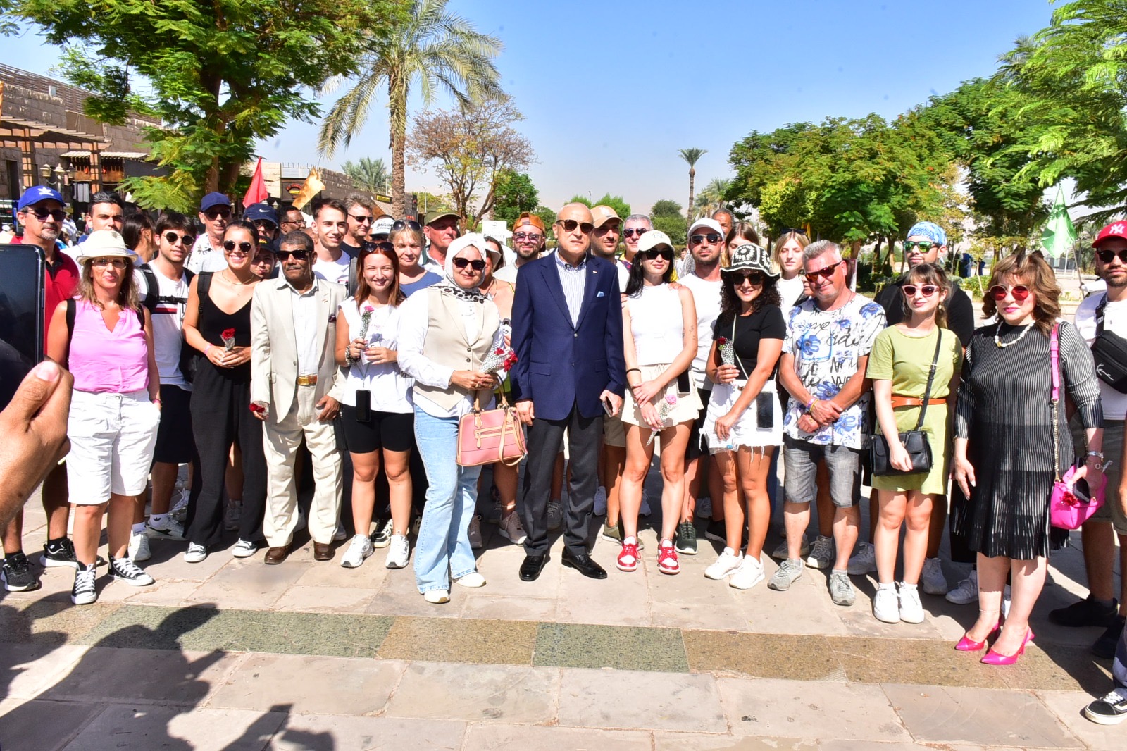 وقال محافظ الأقصر: أهلا وسهلا بكم في يوم السياحة العالمي، رسالة من أرض الأقصر إلى العالم كله، كل سنة وانتم طيبين، وشايفين الأمن والأمان والسلام، كل المحبة من شعب الأقصر للسائحين، في موسم سياحي جديد وعظيم إن شاء الله، وبنطمن العالم كله تعالوا تمتعوا بروعة الأقصر وشوفوا عظمة الحضارة والآثار بها.
