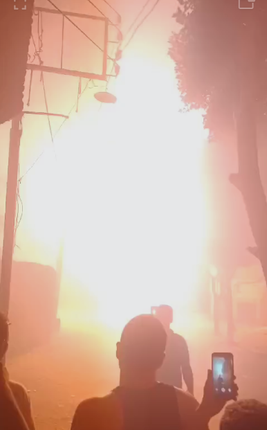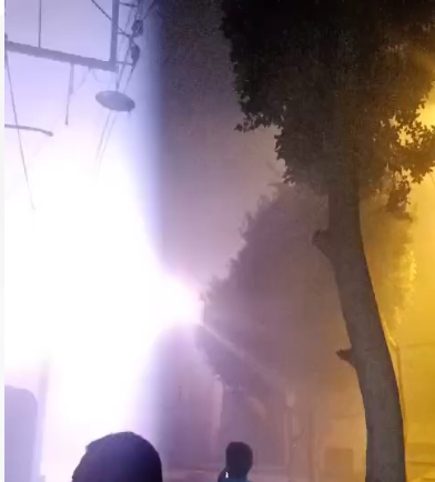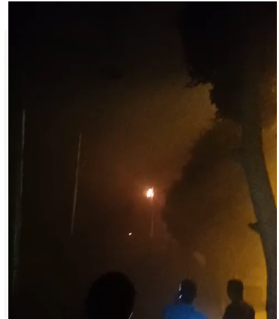 وأظهر مقطع فيديو التقطه أحد شهود العيان اشتعال النيران في العمود، وحدوث شراز كهربي، وتطاير الشرر.