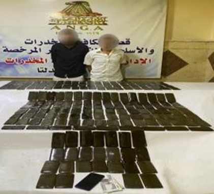 وتمكنت مديرية أمن البحيرة من ضبط عنصرين إجراميين لهما معلومات جنائية بدائرة مركز شرطة بدر وبحوزتهما 21 كيلو جرام لمخدر الحشيش.