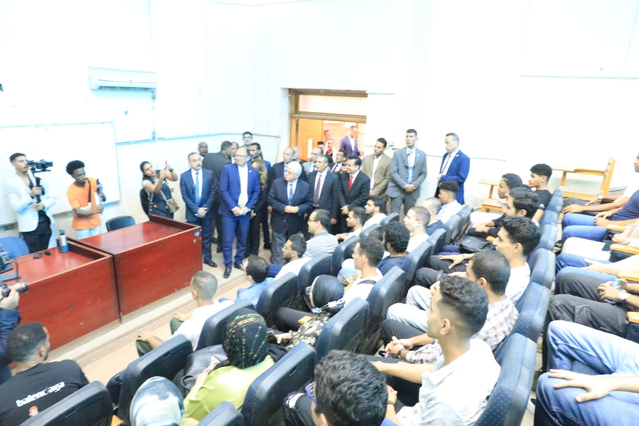 وتفقد الدكتور أيمن عاشور المُدرجات والقاعات الدراسية والمعامل، واطمأن على وجود أعضاء هيئة التدريس والهيئة المعاونة بالجامعة لضمان حُسن سير وانتظام العملية التعليمية، مع التأكيد على تنظيم جولة تعريفية للطلاب بالبرامج الدراسية ونُظم الدراسة بها، مشيرًا إلى أهمية توفير بيئة تعليمية مناسبة للطلاب.