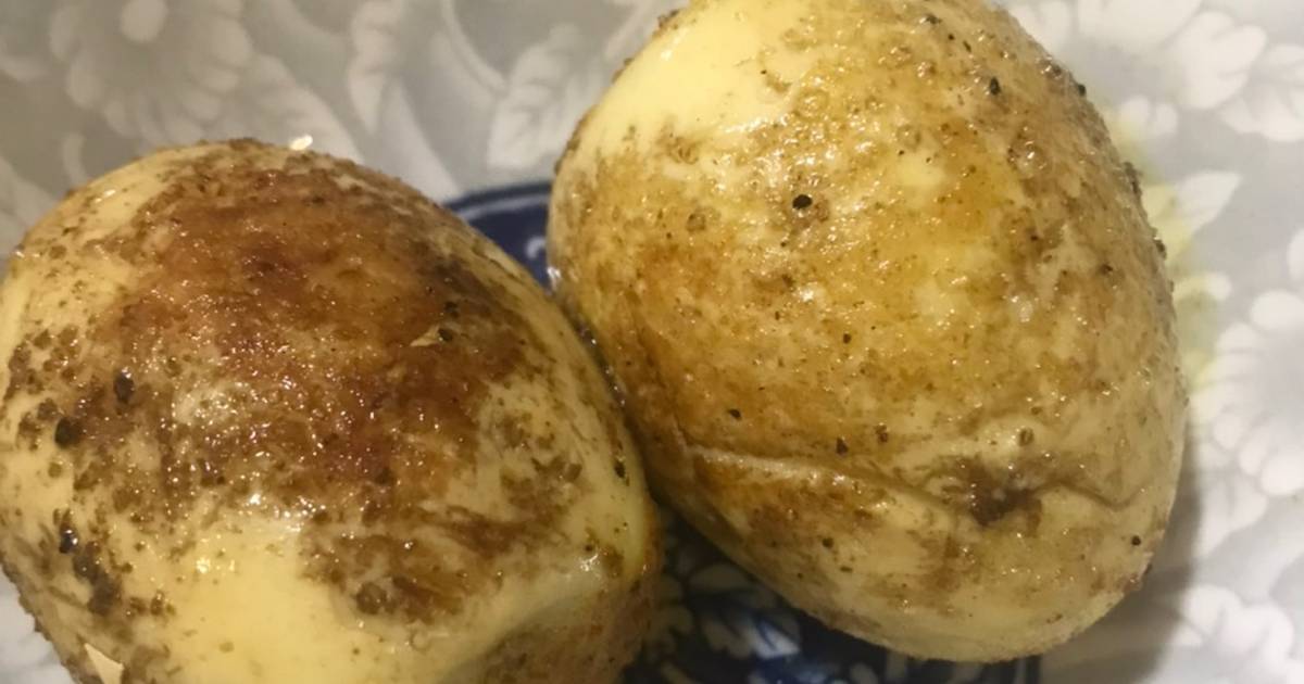 - ضعي البيض المسلوق والمقشر في الزبدة وحركي المقلاة يمنيا ويسارا.