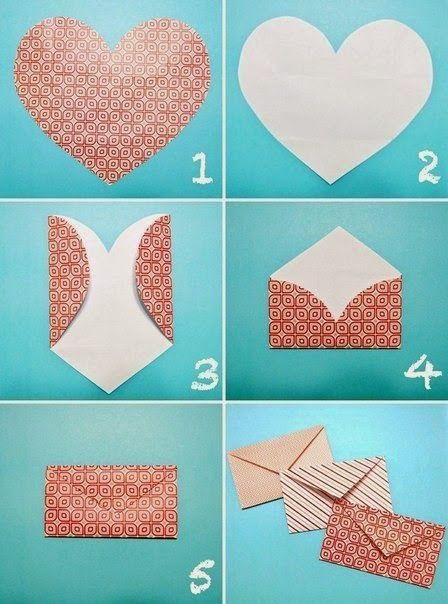 تتعدد أشكال وطريقة عمل ظرف على شكل قلب بالورق، ويمكن تصميم أكثر من ظرف بأدوات واحدة أو بإدخال بعض الإكسسوارات الزينة لمنح الظرف شكلا مميزًا.