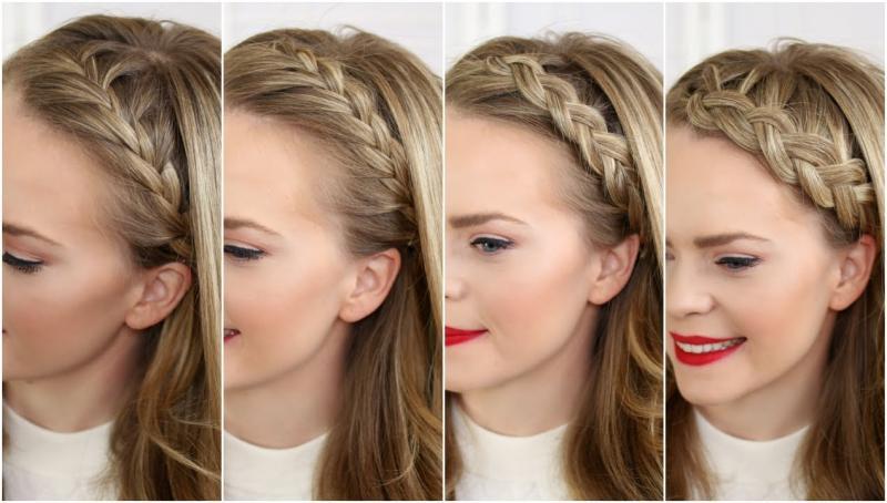 - ضعي الضفيرة الأولى حول رأسك، بحيث تبدأ من أحد الأذنين وتنتهي عند الأذن الأخرى.