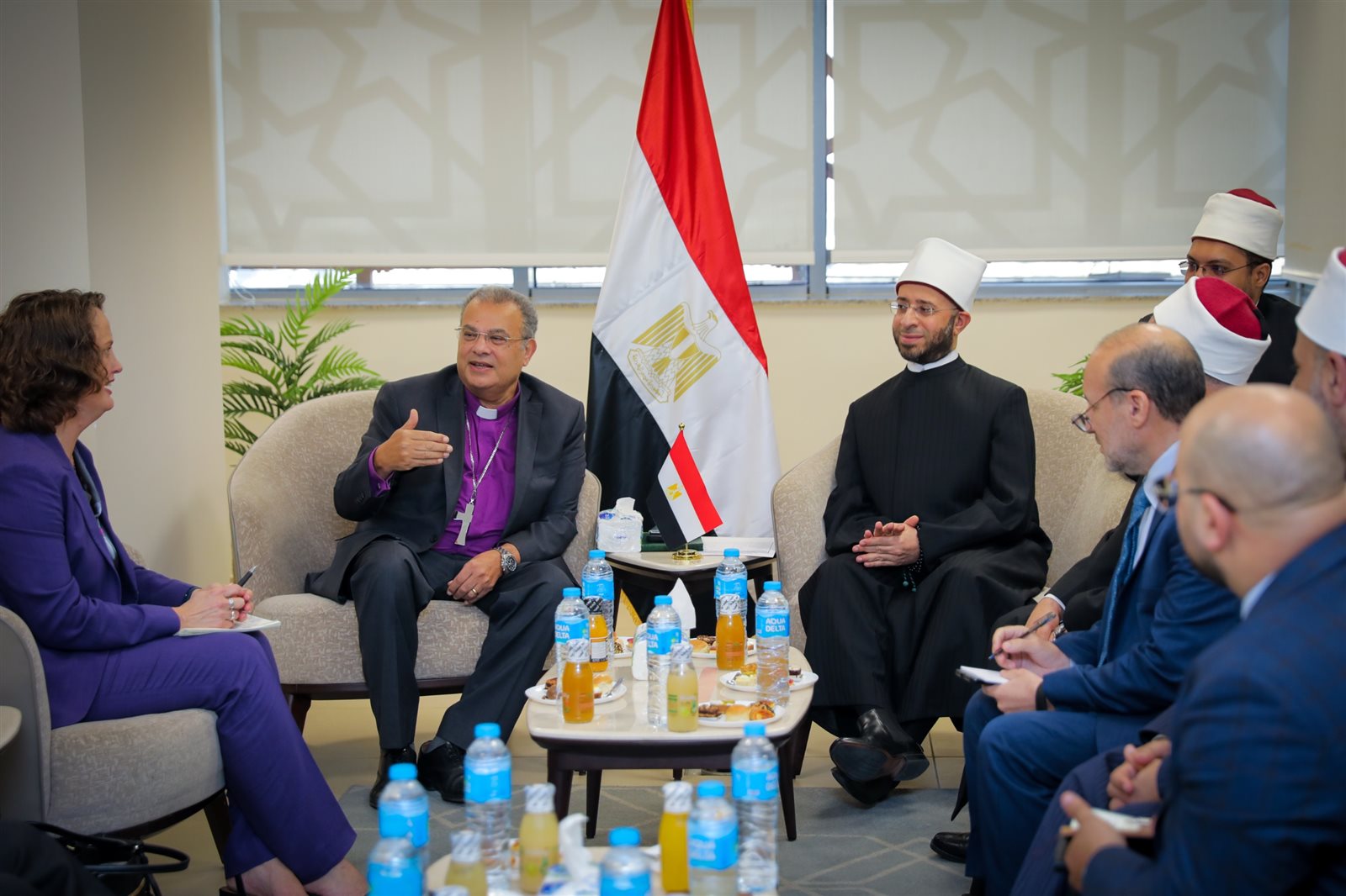 استقبل الدكتور أسامة الأزهري، وزير الأوقاف، اليوم الاثنين، الدكتور القس أندريه زكي، رئيس الطائفة الإنجيلية بمصر، ووفدًا رفيع المستوى من مجلس كنائس جنوب إفريقيا وممثلي الكنائس الأمريكية، برئاسة الدكتورة القس ماي إليس كانون، المديرة التنفيذية لمنظمة كنائس من أجل السلام في الشرق الأوسط.