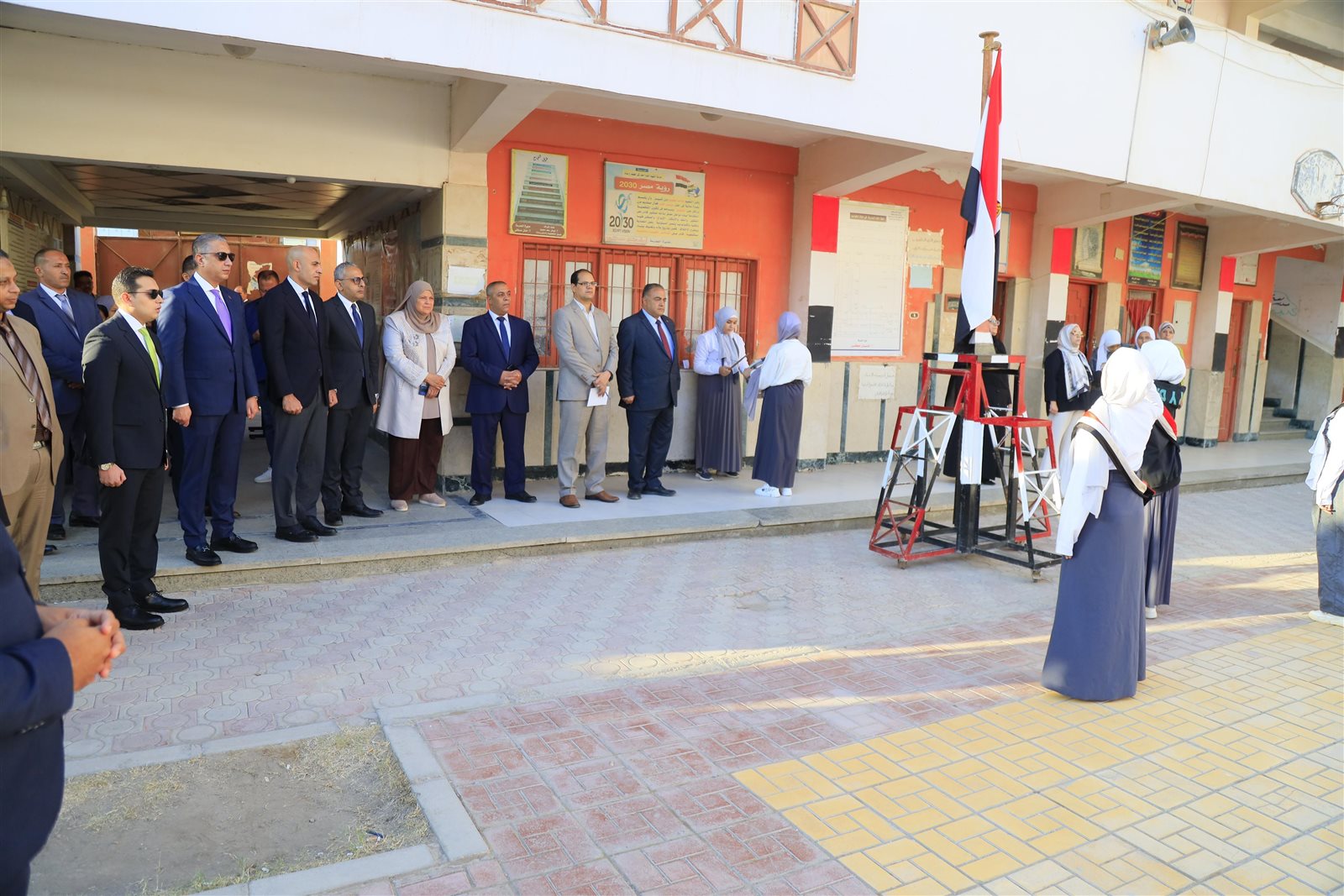 وخلال زيارة مدرسة " الشهيد اللواء أحمد زكى لطيف الإعدادية بنات" التى تضم عدد ٥٦٨ طالبة، حرص الوزير والمحافظ على حضور طابور الصباح، والاستماع للإذاعة المدرسية، ثم تفقدا الفصول؛ للاطمئنان على انتظام سير العملية التعليمية بالمدرسة، ونسب الكثافات الطلابية، ومتابعة كراسات الحصة والواجب للطالبات، ومدى التزامهن بأداء الواجبات المدرسية، كما أجرى الوزير حوارًا مع عدد من المعلمات حول أساليب التدريس، وآليات أداء الطالبات الواجبات والتقييمات المدرسية داخل الفصول.