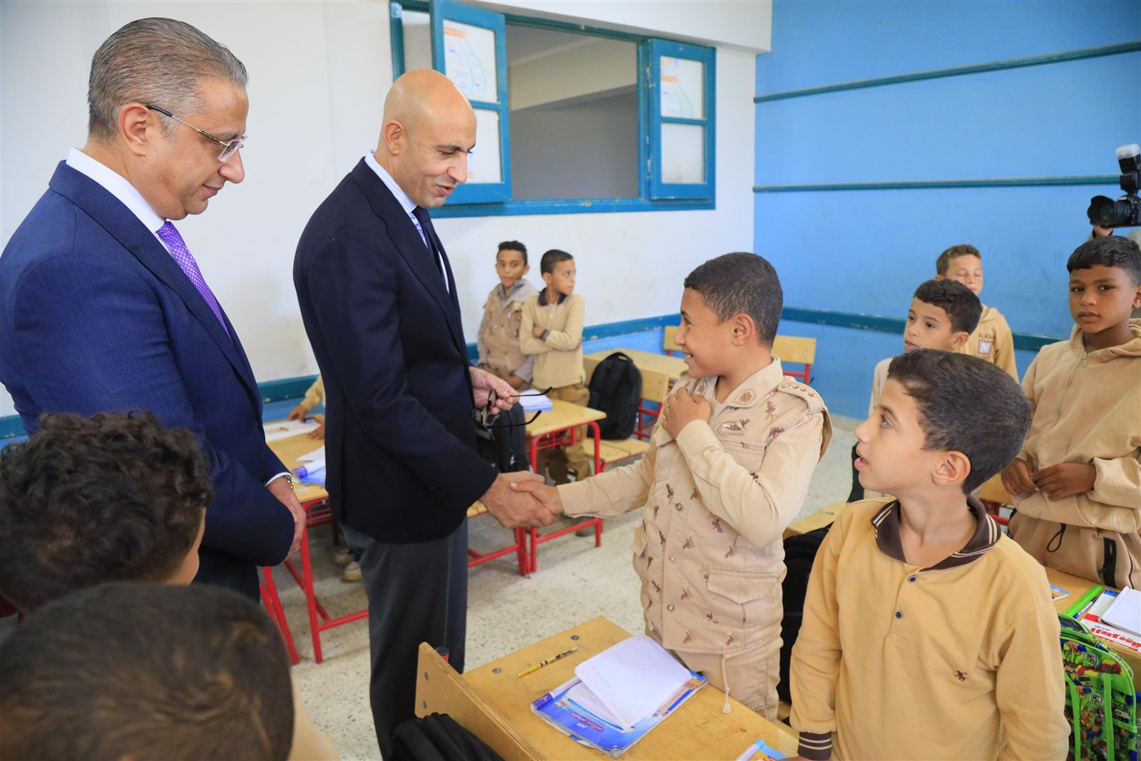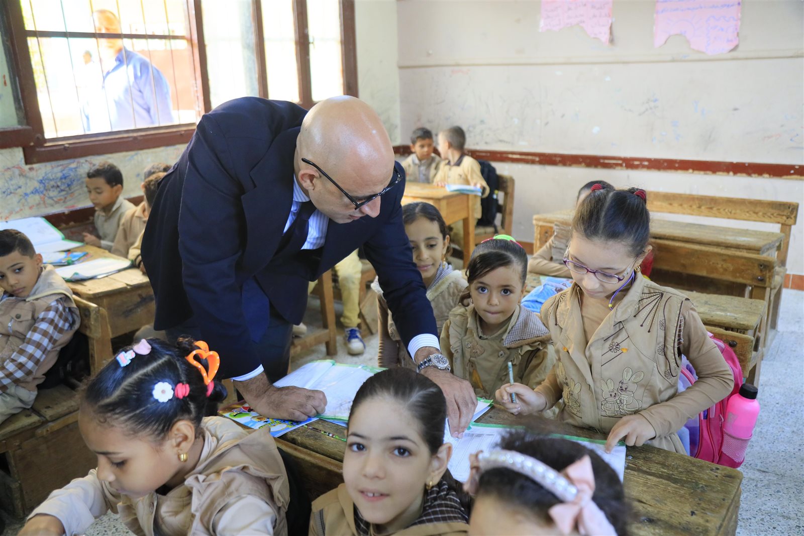 وتضمنت الجولة كذلك تفقد مدرسة "حسن عبد العزيز للتعليم الأساسي" والتى تضم عدد 992 طالبا وطالبة بصفوف رياض الأطفال والابتدائي والإعدادي التابعة لإدارة معصرة صاوى التعليمية.