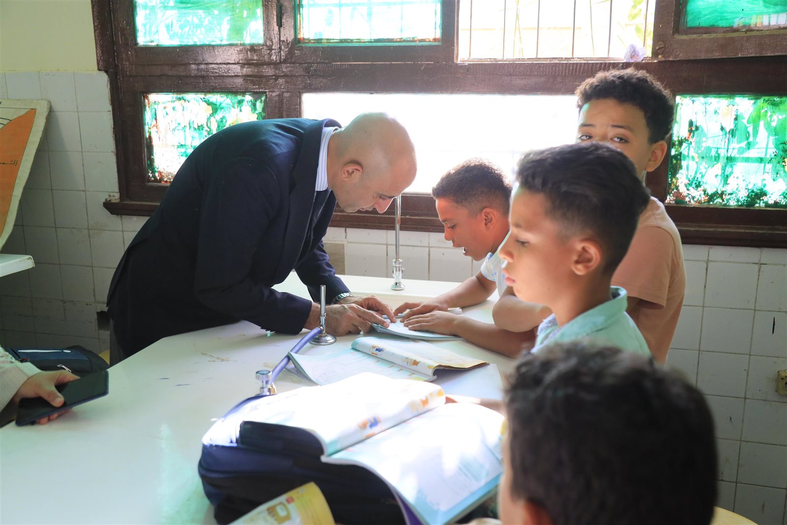 وقد حرص الوزير على متابعة أداء الطلاب في الواجبات المدرسية، مشيدًا بإحدى معلمات اللغة العربية ودورها في الارتقاء بأداء الطلاب.